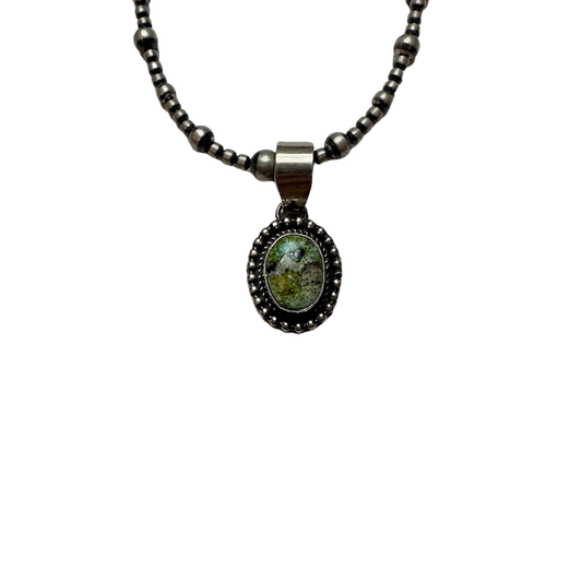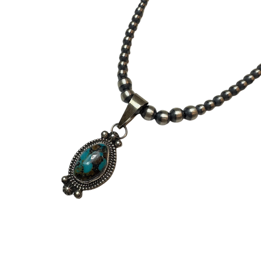 Turquoise Pendant with Grad Navajo Pearl Strand