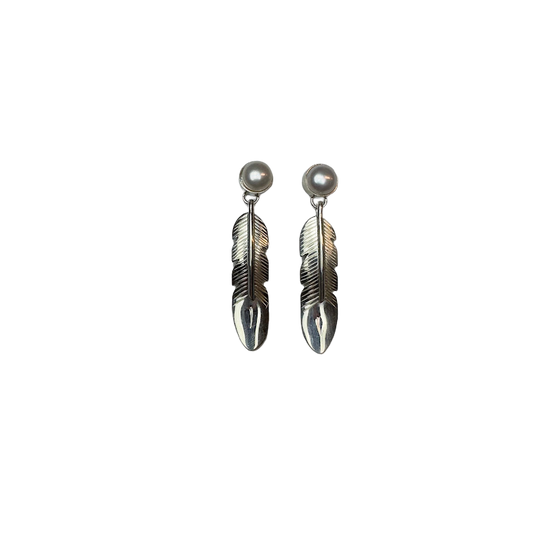 White Pearl & Sterling Silver Eagle Feather Earrings