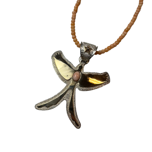Scissortail Necklace w/ Sterling Silver, Gold, Vintage Coral