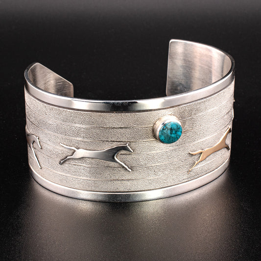 Sterling Silver, Gold & Brisbee Turquoise Cuff